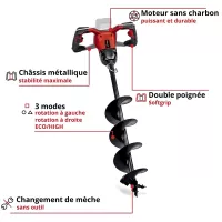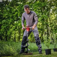 Avec ses différents modes de fonctionnement, vous serez capable de venir à bout de n'importe quel type de terre que vous pourriez rencontrer. Vous pourrez changer le sens de rotation, utiliser le mode ECO ou régler sur le mode HP pour les sols difficiles. Une mèche de forage de 15 cm de diamètre et 80 cm de longueur est fournie avec l'outil.